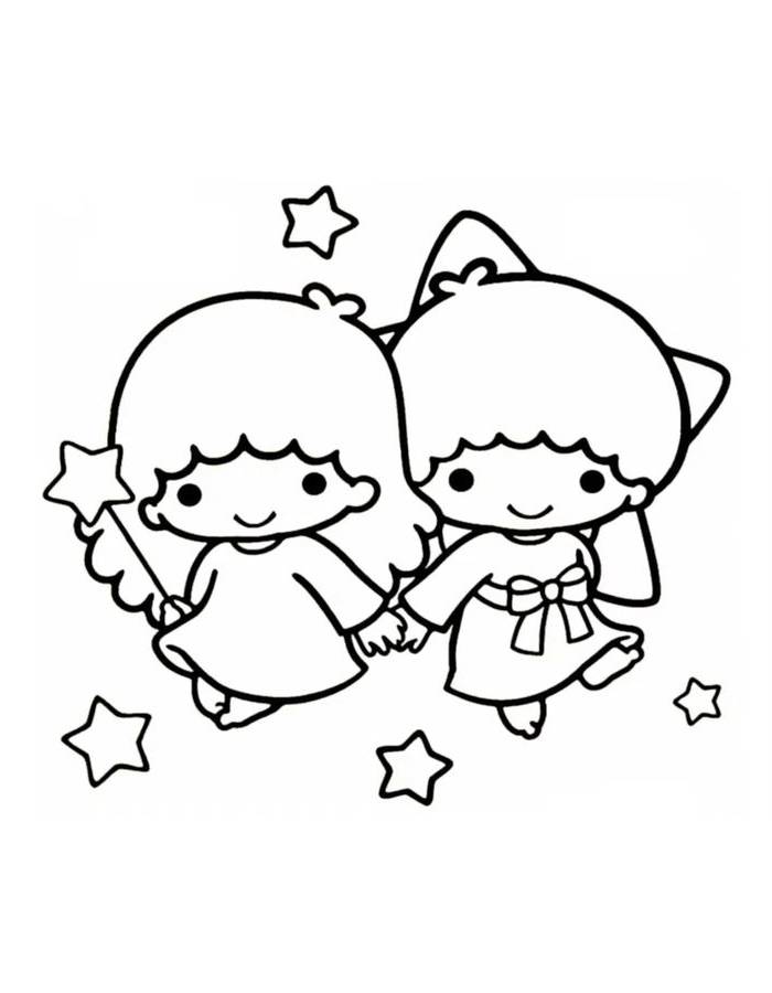 They are perfect for children and teens who love adorable and beautiful designs and adults who enjoy calm and sweet themes to relax and express their creativity. Download and print these Little Twin Stars coloring pages for free. Kiki and Lala's dream world is filled with soft pastel tones of light pink, blue, and purple.
