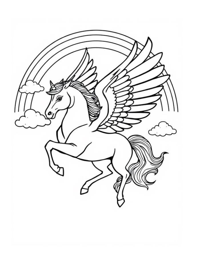 Use bright colors to make a Pegasus that is strong and amazing. You can use these pages at school, home, or a dream party if you print them out. One wing, one cloud, and one lovely color at a time: use crayons or colored pencils to make art.
